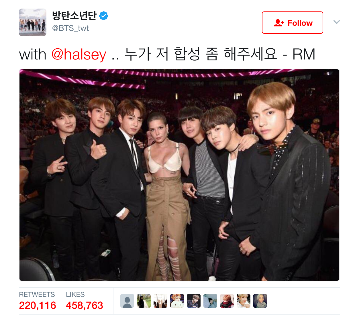 BTS chụp ảnh với Halsey - nữ ca sĩ đã có bản hit đình đám Closer.