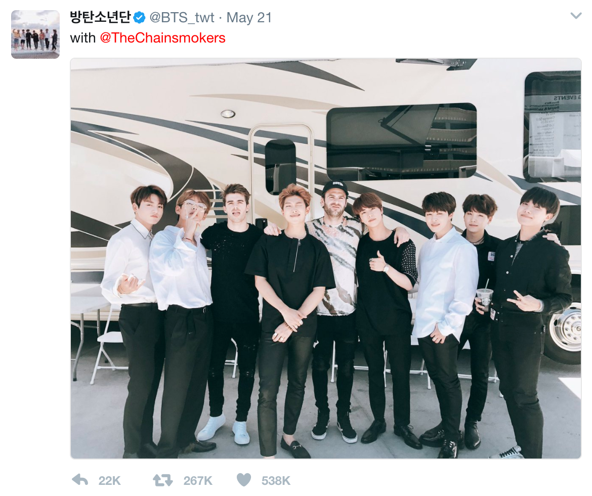 Từ một boygroup ít tiếng tăm chỉ mới debut cách đây 3 năm, họ bay như vũ bão đến với vô vàn những thành công tại thị trường châu Á và cũng từng đặt một chân lên BXH âm nhạc thế giới dù mới chỉ ở những vị trí “xa xa”. Thế nhưng, Billboard Music Awards đã đánh dấu bước ngoặt lớn trong sự nghiệp của một nhóm nhạc Kpop, đó chính là việc 7 anh chàng được vinh danh trên bục nhận giải trong sự ăn mừng của toàn thể Army (fandom của BTS), sự phấn khích của sao lớn Miley Cyrus, lời chúc mừng từ The Chainsmokers lẫn tiếng vỗ tay của hàng trăm khán giả tại nhà hát T-Mobile Arena. Vậy đó, nhưng lại không chỉ dừng lại ở khoảnh khắc lịch sử mang tên chiếc cúp Top Social Artist, chỉ đơn giản việc có mặt ở nơi đây cũng đã là giấc mơ của 7 chàng trai nhà Big Hit rồi.