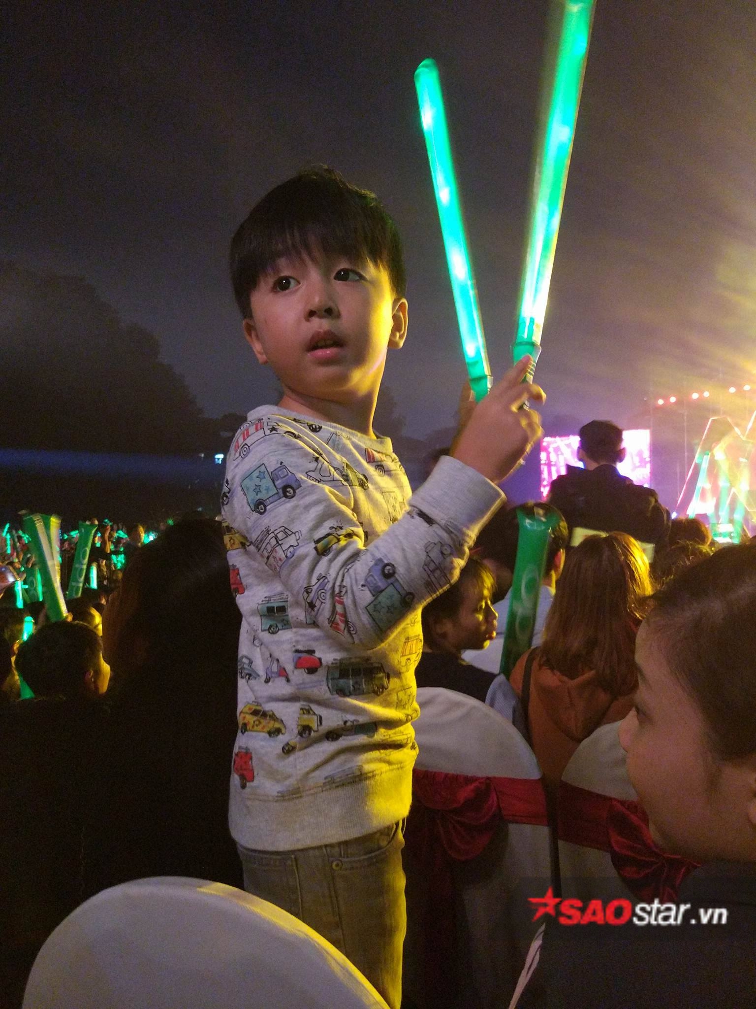 Không lạ gì khi đông đảo các bạn trẻ ở độ tuổi đi học, đi làm đến với chương trình, thế nhưng, phóng viên Saostar đã kịp ghi lại khoảnh khắc đáng yêu của một khán giả đặc biệt, cậu bé fan nhí cực kì cuồng nhiệt nhún nhảy theo từng màn trình diễn không kém các anh, chị lớn.