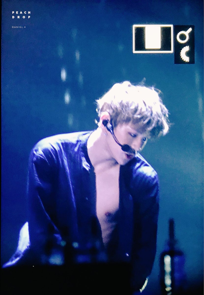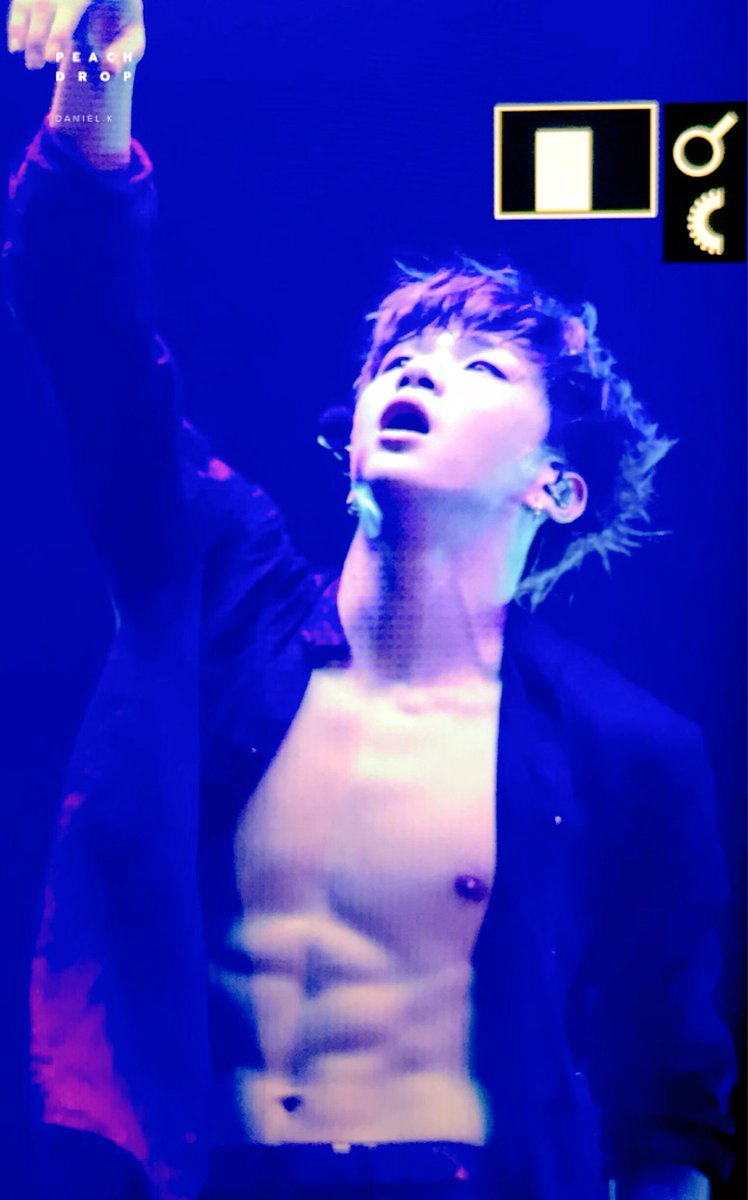 Khi đoạn nhạc gần đến cao trào, Kang Daniel đã mở tung cúc áo ra, để lộ phần múi bụng và cơ ngực săn chắc. Nhờ ánh đèn mập mờ, ảo diệu cùng diện mạo xuất thần trên sân khấu, Kang Daniel đích thị là ngôi sao sáng nhất đêm nay.
