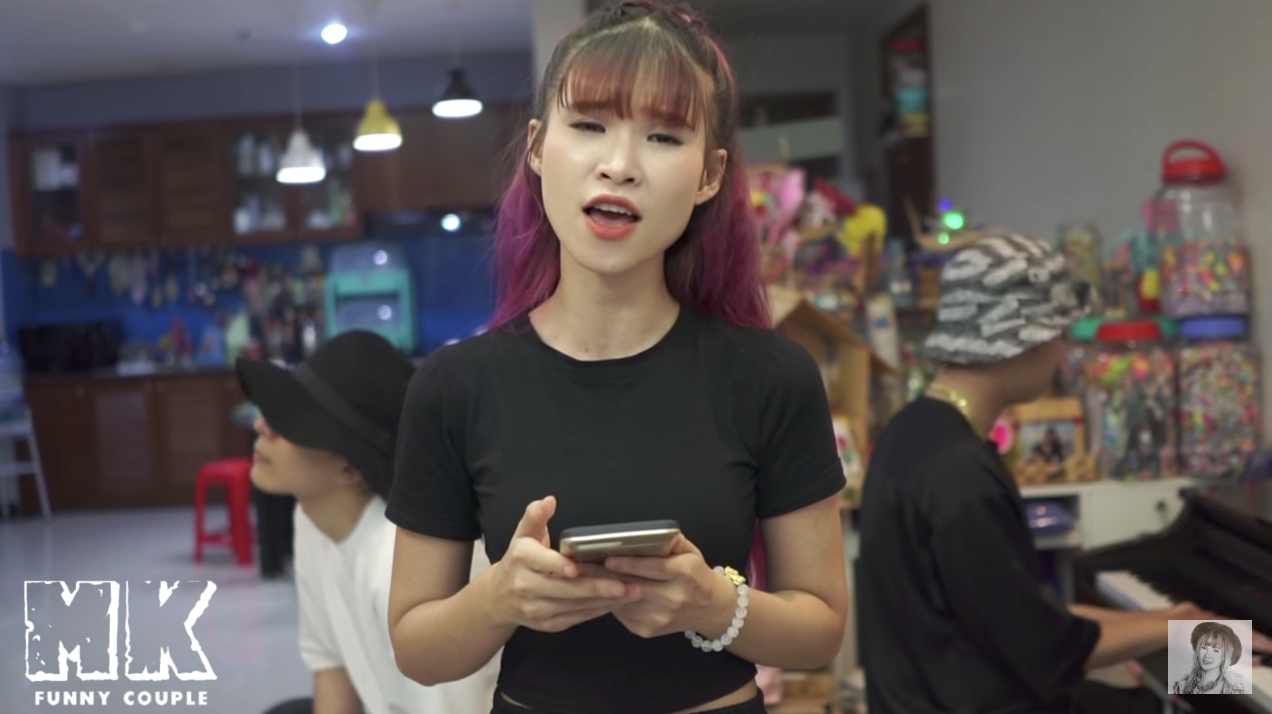 Nữ ca sĩ cùng “band nhạc” đầy vui nhộn với “chồng sắp cưới” Kelvin Khánh (áo trắng) và người bạn đàn piano.
