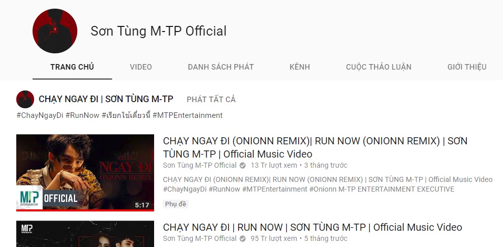 Kênh YouTube của tài khoản bình luận trên khiến các fan tin rằng đây chính là tài khoản chính thức của Sơn Tùng.
