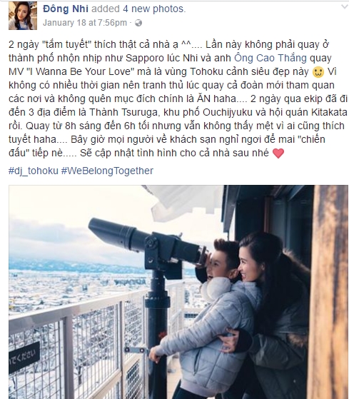Đông Nhi liên tục đăng ảnh tại Nhật Bản với hashtag #Webelongtogether #Comingsoon