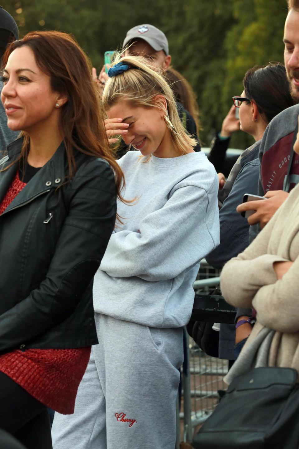 Hailey Baldwin đứng ngay đó, vừa xấu hổ vừa tươi cười!