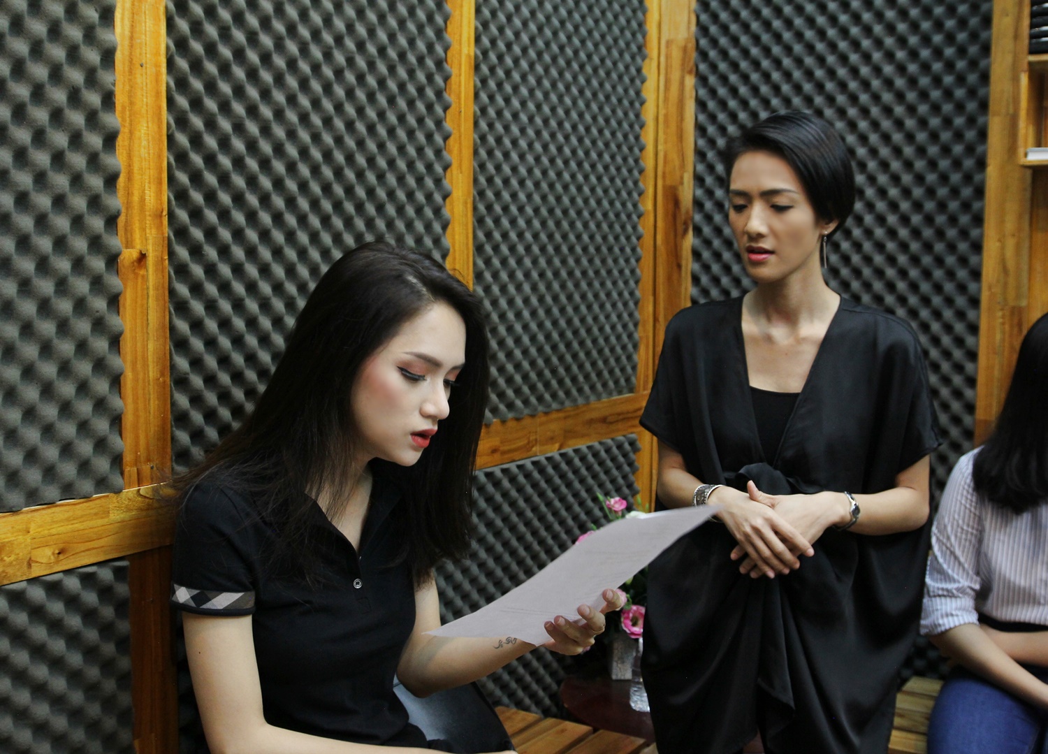 và Văn Mai Hương tới thu âm trước đó không lâu.