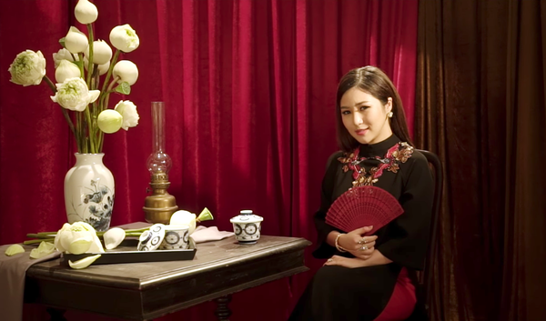Xuất hiện thướt tha và dịu dàng bên tà áo dài truyền thống, nữ HLV Giọng hát Việt nhí 2017 ngân nga từng câu hát đầy day dứt về phận đàn bà: “Còn không em, còn đâu cánh môi hồng? Lời ai nói an lòng, cũng trôi mãi như dòng sông“.