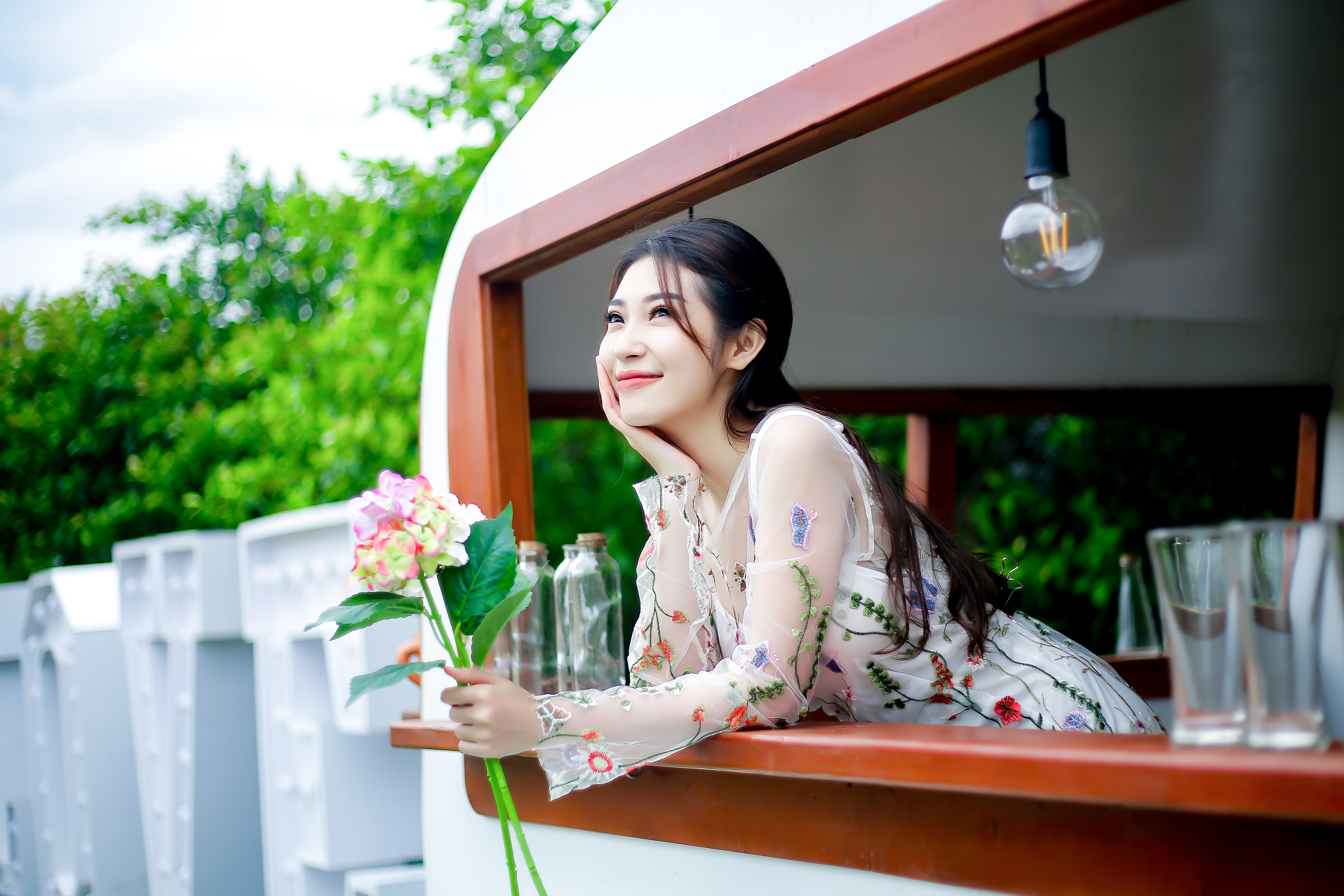 Nữ ca sĩ sinh năm 1991 lúc quyến rũ, nữ tính trong trang phục chất liệu ren trắng, trong suốt, tuy kín đáo nhưng vẫn gợi cảm, lúc lại dịu dàng, ngọc nữ trong bộ đầm thêu hoa.