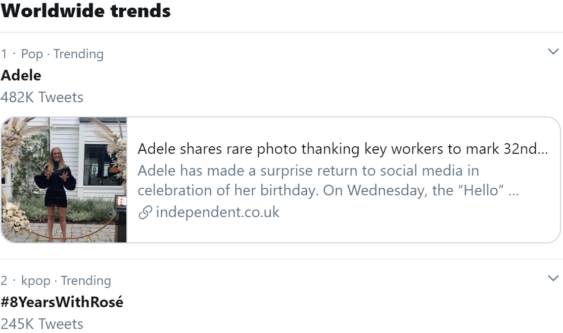 Khoảnh khắc hashtag #8YearsWithRosé trending #2 toàn cầu sau 1 tiếng 30 phút.