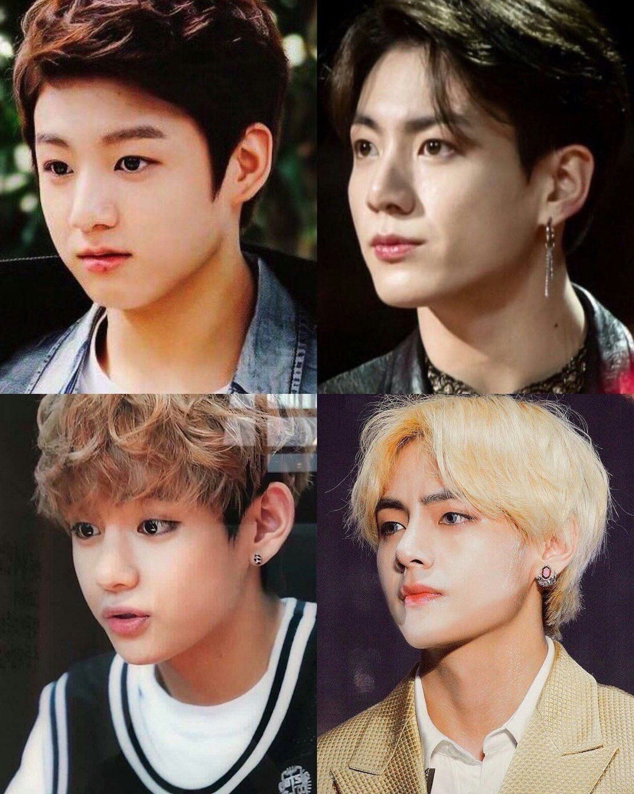 Jungkook và V chính thức debut cùng BTS vào ngày 13/6 năm 2013 với 5 thành viên khác là Jin, Suga, J-Hope, RM, Jimin cùng album đầu tay - 2 Cool 4 Skool. Là hai thành viên nhỏ tuổi nhất, hồi mới chính thức đứng trên sân khấu, hai nam ca sĩ này trong khá trẻ và mang nhiều nét dễ thương hơn so với bây giờ. Và mới đây, khi một tài khoản so sánh hình ảnh Jungkook và V thời mới debut và hiện tại, nhiều cư dân mạng đã hết sức bất ngờ về sự thay đổi chóng của họ sau 7 năm.