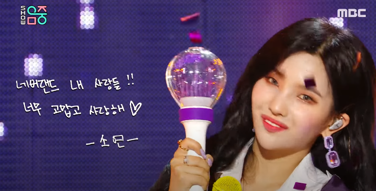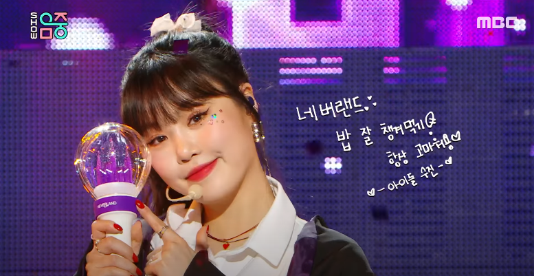 Tại tập phát sóng Music Core hôm nay (02/05/2020), (G)I-DLE khiến người hâm mộ vô cùng bất ngờ khi mang hẳn lighstick lên sân khấu, lý do cho sự xuất hiện đặc biệt của chiếc gậy đại diện fandom này chính là để kỷ niệm 2 năm ra mắt của (G)I-DLE. Vào ngày này 2 năm trước, (G)I-DLE chính thức ra mắt với sự chào đón của đông đảo người hâm mộ, để dành cho các fan một món quà đặc biệt, các cô gái nhà Cube đã chuẩn bị những lời nhắn thông qua sân khấu Luv U tại Music Core.