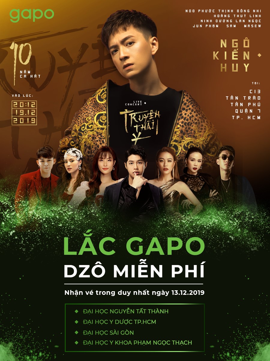 Là mạng xã hội Việt có gần 3 triệu người dùng và một nửa trong số đó là học sinh - sinh viên, Gapo dù tuổi đời chưa lâu nhưng đã hiện thực hóa không ít những mong muốn kết nối cùng thần tượng của các bạn trẻ. Trước Ngô Kiến Huy, Gapo đã đồng hành cùng đêm nhạc “Gặp gỡ thanh xuân” của Khắc Việt, nam ca sĩ gắn liền với tuổi trẻ của thế hệ 8x với những bản nhạc tình bất hủ.