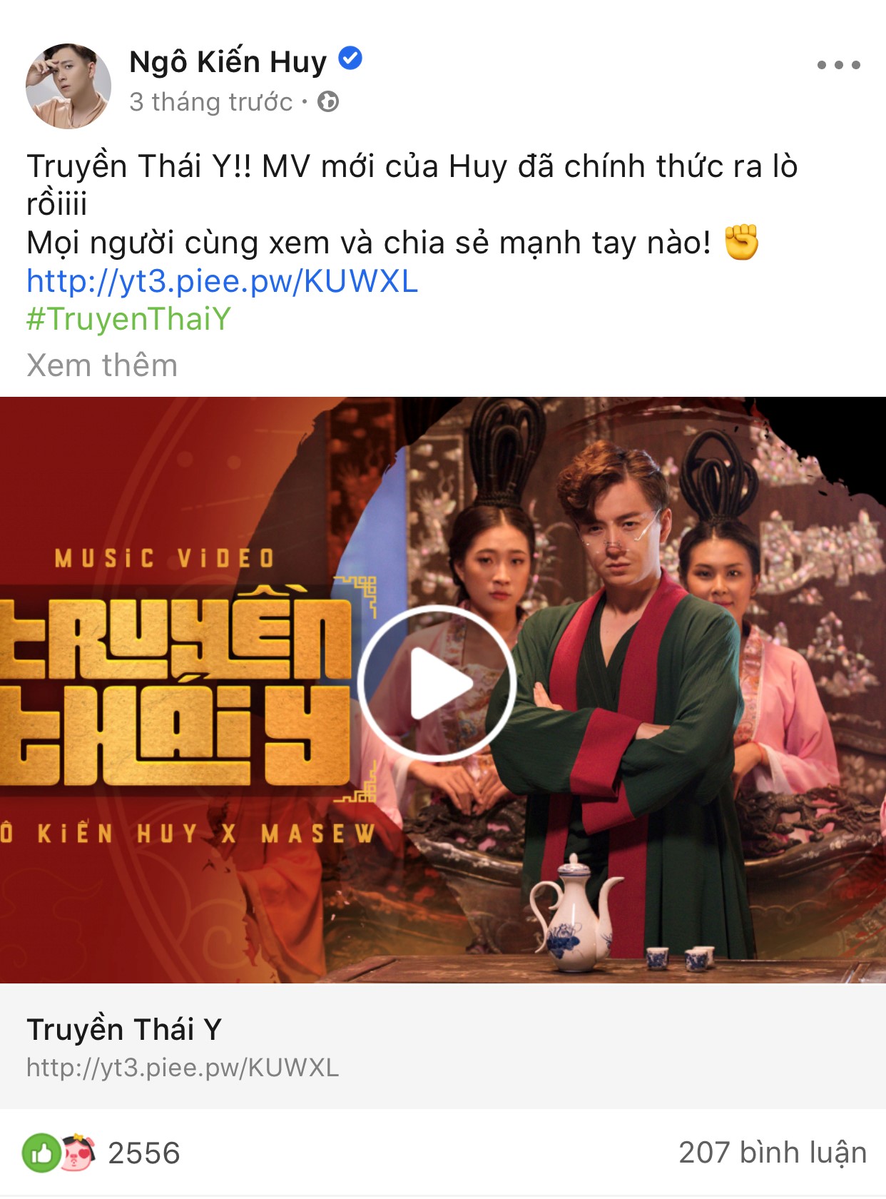 Trong năm 2019, Ngô Kiến Huy có màn comeback thành công trong lĩnh vực âm nhạc với MV Truyền Thái Y. Nhờ ý tưởng độc đáo và ngay từ tựa đề đã gây tò mò, MV nhanh chóng viral và nhanh chóng đưa Ngô Kiến Huy trở lại đường đua Vpop.