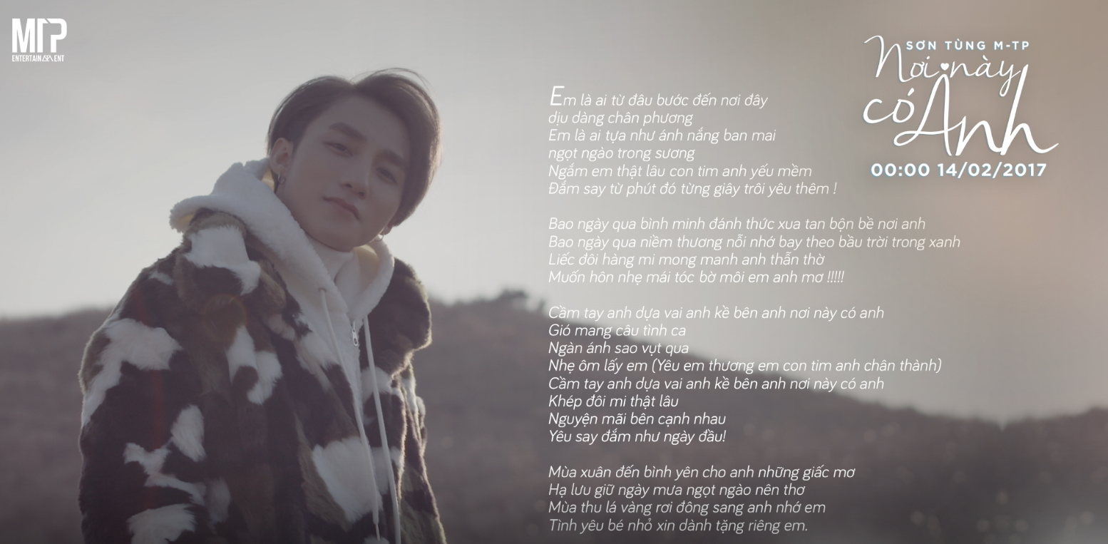 Và nếu như nói Đông Nhi là ngoại lệ trong “chặng đua” các sản phẩm âm nhạc hot nhất mùa Valentine 2017 của Vpop quả không sai. Bởi lẽ, hầu hết các nghệ sĩ thực hiện “món quà tinh thần” dành tặng fan nhân dịp lễ đặc biệt này đều đã tung sản phẩm trước đó. Khán giả nhiều phần hiểu được lí do xuất phát từ “bom tấn” sắp ra lò - MV Nơi này có anh của Sơn Tùng M-TP. “Sức công phá” bất khả chiến bại của anh trên tất cả các “mặt trận” Vpop ở “thì hiện tại”: BXH, lượt xem, lượt nghe trực tuyến… là không thể phủ nhận được.