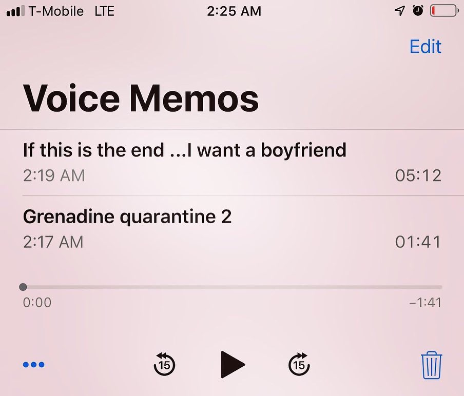 Trong lúc đó, giọng ca Summertime Sadness chia sẻ hình ảnh ở nhà tự cách ly trước tình cảnh virus COVID-19 đang hoành hành tại Mỹ. Nhân tiện thời gian rảnh rỗi và mới chia tay bạn trai, ngôi sao âm nhạc 34 tuổi hào hứng khoe với các fan hâm mộ mình vừa hoàn thành xong hai demo ca khúc mới, được đặt tên lần lượt tạm dịch là: “Nếu đây là tận thế … Em muốn một người tình” và “Siro tự cách ly 2”. Hiện tại, các fan đang vô cùng mong chờ hai ca khúc này sẽ góp mặt trong các dự án âm nhạc sắp tới của nữ ca sĩ.