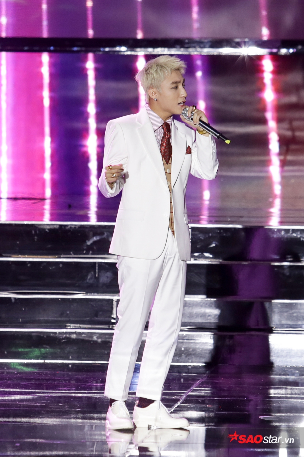Đảm nhận vai trò quan trọng là mở màn, Sơn Tùng đã khiến người hâm mộ thích thú với phần trình diễn bản hit Nơi này có anh được dàn dựng ấn tượng. Trông nam ca sĩ xuất hiện cùng bộ vest trắng lịch lãm có vẻ nghiêm túc như thế nhưng ít ai biết, phía sau hậu trường sân khấu, anh chàng lại cực đáng yêu khi đứng nhảy nhót… một mình trước giờ diễn.