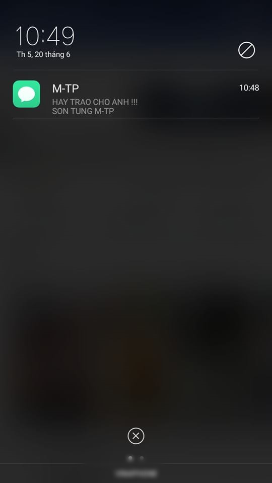Bên cạnh đó, cách đây ít phút, cộng đồng Sky cũng đang rơi vào trạng thái hoang mang “tột độ” khi có một số fan nhận được tin nhắn vô cùng khó hiểu. Theo đó, nguồn tin nhắn gửi tới được đặt tên là M-TP có nội dung: “Hãy trao cho anh!!! Sơn Tùng M-TP”.
