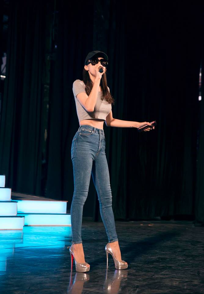Hình ảnh Hương Giang tại buổi tổng duyệt chương trình.