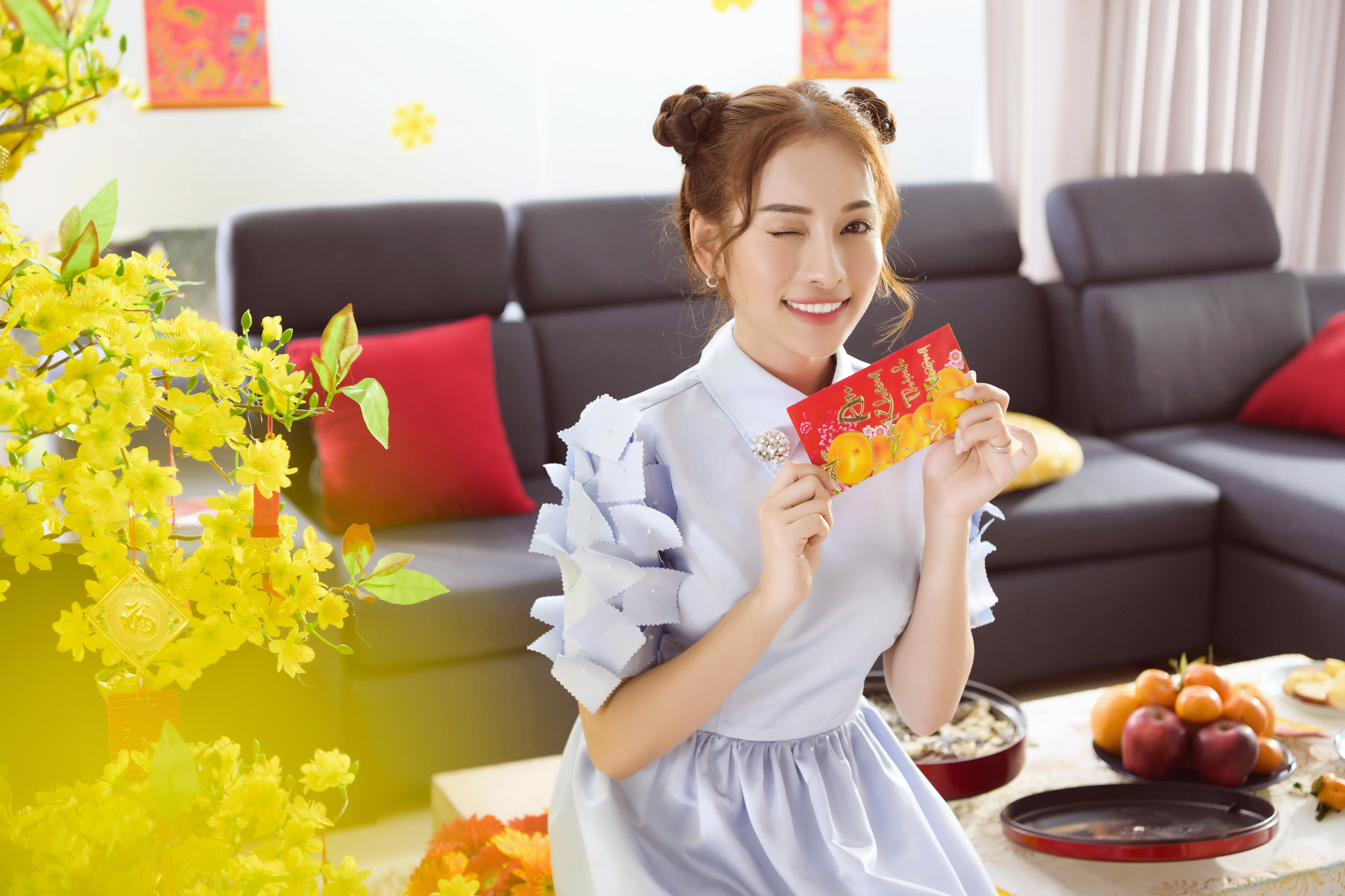 Vợ chồng Dương Khắc Linh - Sara Luu 'tung chiêu' nhắc nhẹ việc lì xì Tết trong MV mới