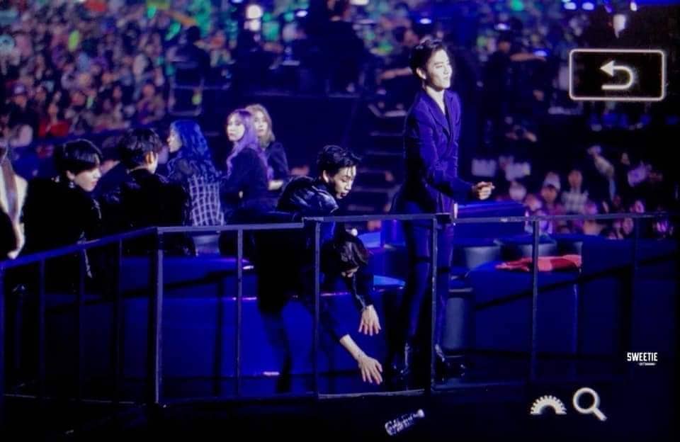 Tuy nhiên, trội nhất chắc chắn phải kể đến khoảnh khắc Jimin đã “đánh mất hình tượng” của mình để trèo hẳn lên thanh chắn của hàng ghế khách mời để tiện theo dõi sân khấu của ATEEZ cũng như diễn biến của lễ trao giải. Hành động của anh chàng sau đó đã nhanh chóng bị fan chụp lại và chia sẻ rộng rãi trên mạng xã hội.
