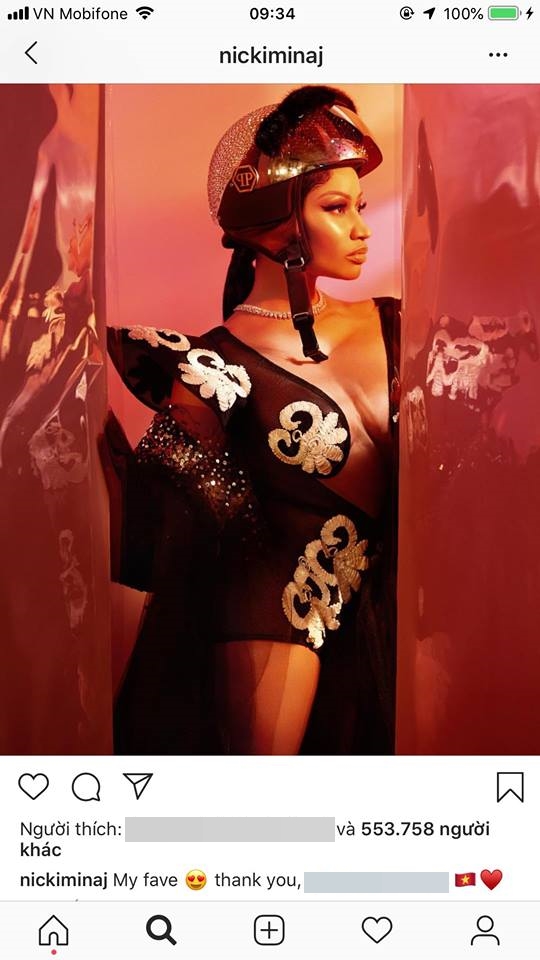 Ảnh đã đẹp mà dòng cap cảm ơn Việt Nam lại càng đáng yêu nữa. Nicki ơi, đến Việt Nam nào!
