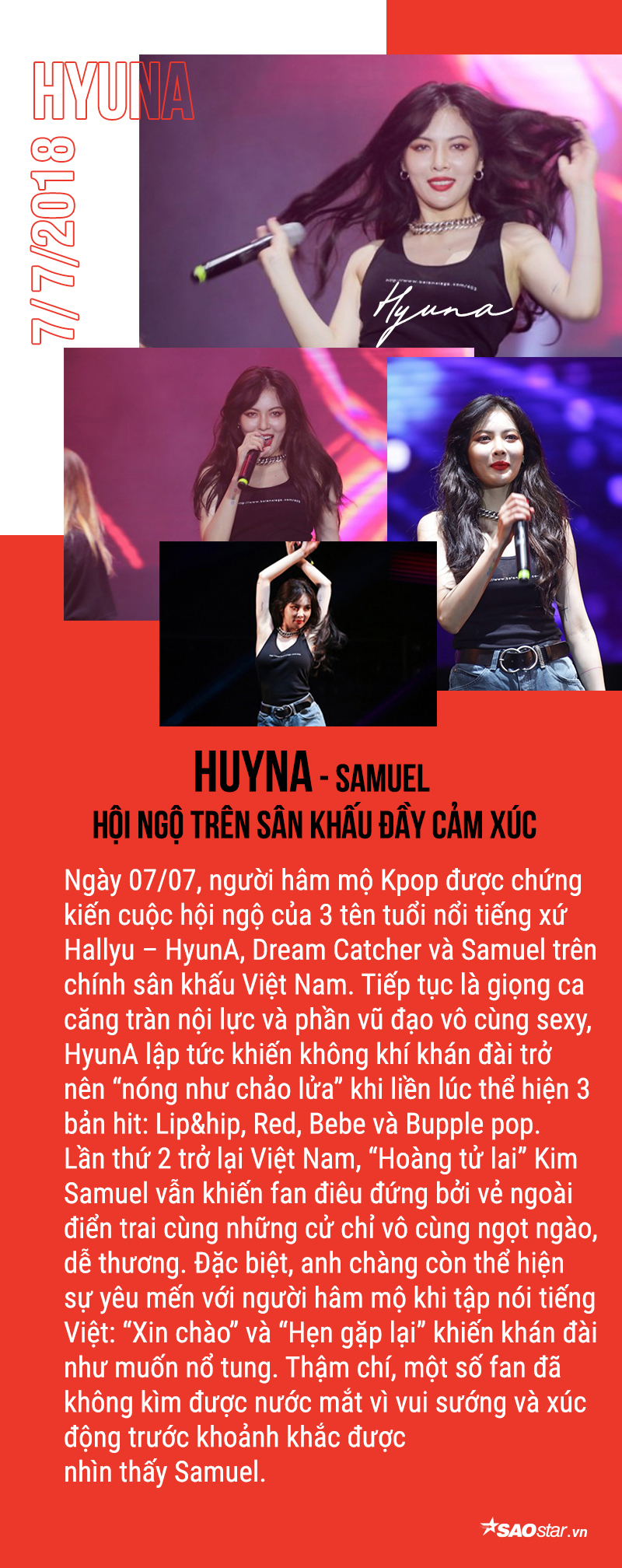 Và hôm nay, nhân dịp tạm biệt năm cũ 2018, chào mừng năm mới 2019, cùng Saostar điểm lại những sân khấu âm nhạc cực hoành tráng và tràn đầy cảm xúc của sao Kpop tại Việt Nam. Có lẽ đây không phải toàn bộ, nhưng hẳn là những đêm nhạc thật sự ý nghĩa và khó quên trong lòng người hâm mộ. Cùng xem lại và cảm nhận nhé!