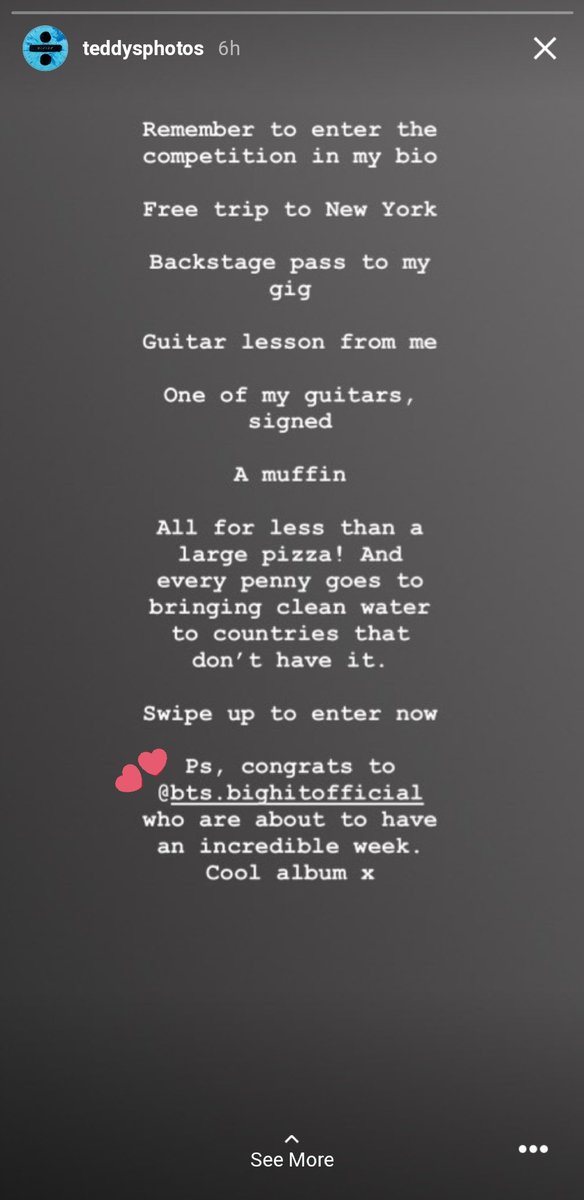 Theo đó, nghệ sĩ hàng đầu US-UK đã tag thẳng @bts.bighitofficial cùng lời nhắn nhủ như sau: “Chúc mừng BTS, các bạn có một tuần đáng kinh ngạc. Album thật chất”. Trước tình cảm của Ed Sheeran dành cho BTS, các ARMY tỏ ra vô cùng thích thú. Trên các diễn đàn mạng xã hội, người hâm mộ đã cùng nhau gửi lời cảm ơn đến Ed Sheeran và chúc nam nghệ sĩ sẽ đạt nhiều thành công trong sự kiện âm nhạc sắp tới.