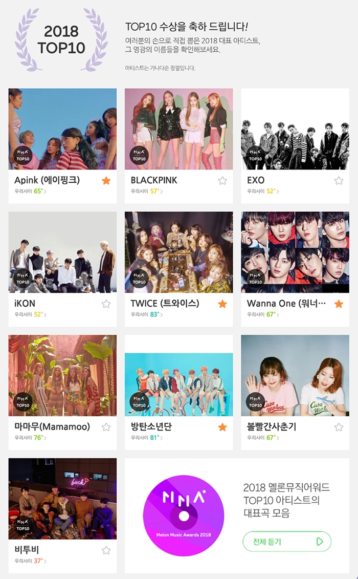 Ngoài các màn trình diễn, phần kết quả của các hạng mục giải thưởng chính cũng được khán giả quan tâm rất nhiều. Với sự vắng mặt tại lễ trao giải MMA năm nay, Twice đã chỉ nhận được một giải thưởng 'lót đường' dù có một năm 2018 hoạt động rất chăm chỉ. Cụ thể hơn, MMA 2018 đã trao cho các cô gái nhà JYP một vé nằm trong top 10 Bonsang - một giải thưởng đã có kết quả….. từ trước đó.