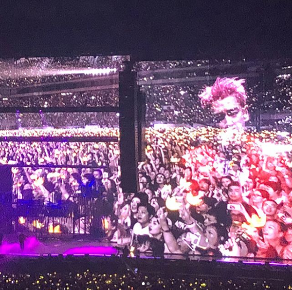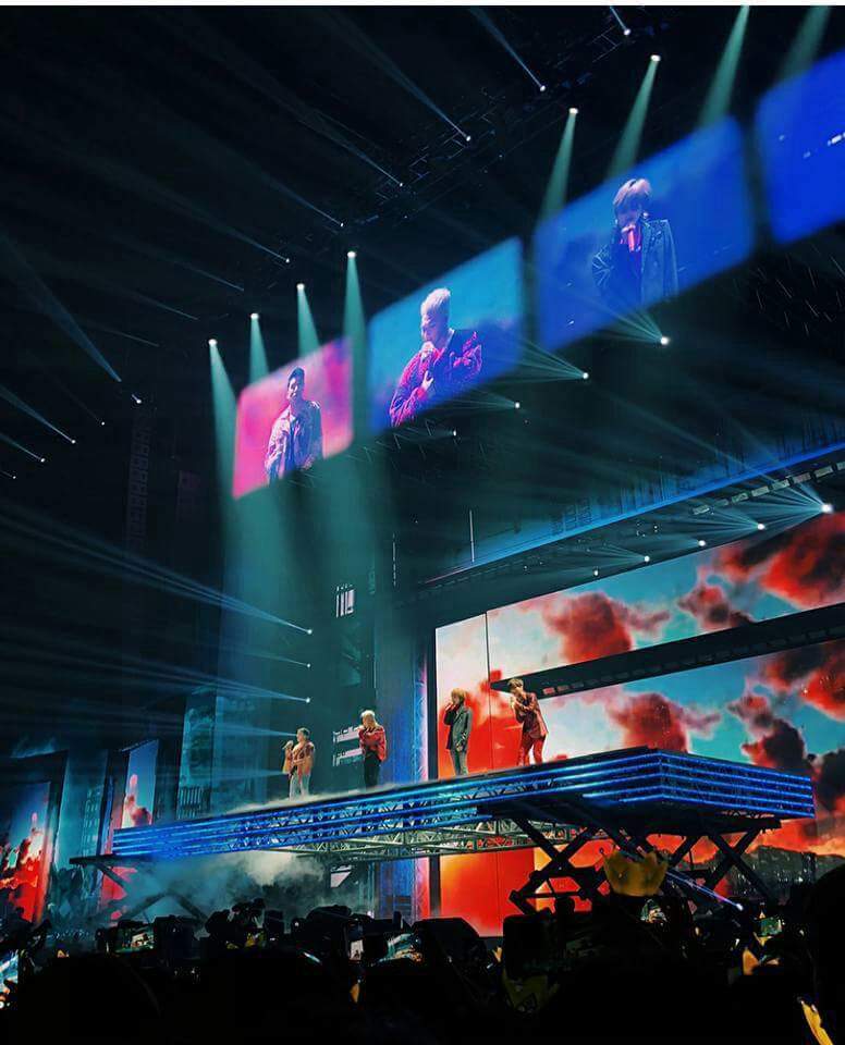Hình ảnh cả 5 thành viên sáng lên giữa “biển vàng” của hàng chục nghìn người hâm mộ.