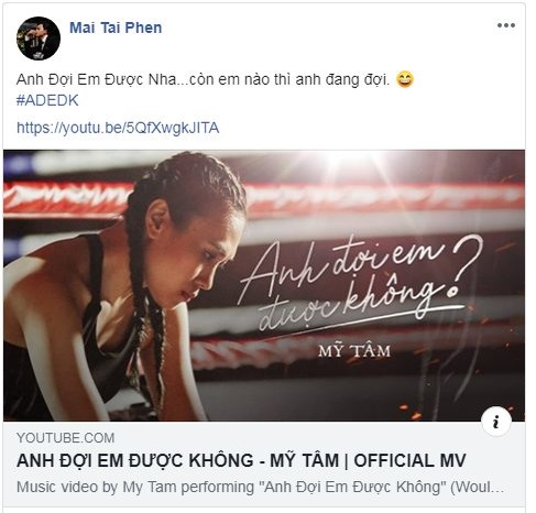 Trước đó, ngay sau khi Mỹ Tâm ra mắt sản phẩm âm nhạc Anh đợi em được không, Mai Tài Phến cũng có động thái gây chú ý trên trang cá nhân. Cụ thể, Nếu như Mỹ Tâm hỏi Anh đợi em được không, anh chàng đã nhanh chóng đáp lại: “Anh đợi em được nha”. Ngay lập tức, các fan đã vô cùng phấn khích và thêm một lần được dịp “đẩy thuyền” cho cặp đôi Mỹ Tâm - Mai Tài Phến.
