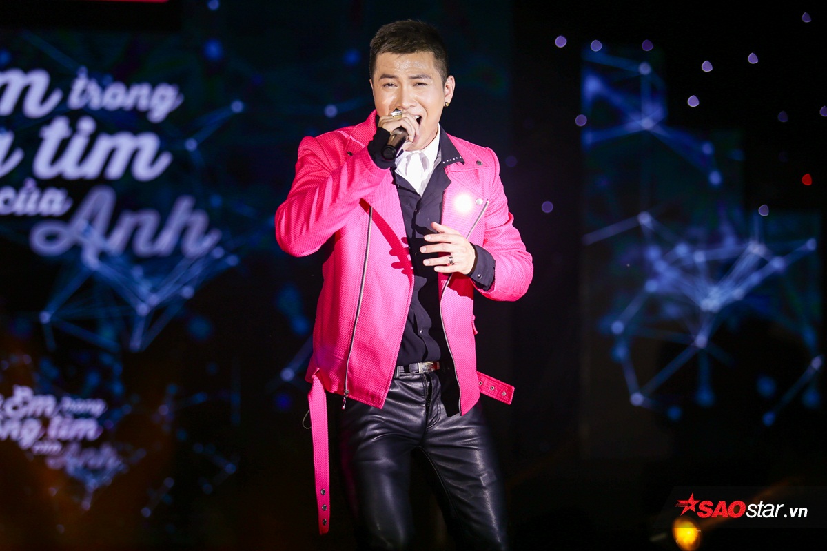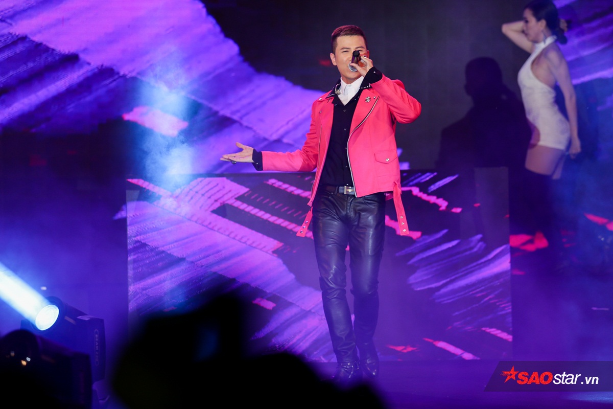 Diện áo khoác hồng nổi bật, Mai Tiến Dũng khiến cả sân khấu nóng lên bởi sự xuất hiện của mình.
