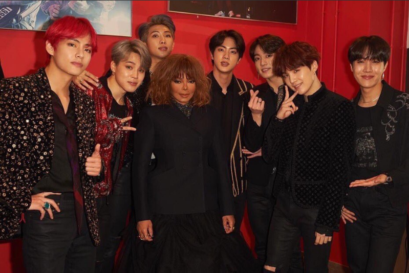 BTS đã có cuộc gặp gỡ với Janet Jackson tại hậu trường, các chàng trai nhà Big Hit tỏ ra vô cùng hạnh phúc khi đứng cạnh một tượng đài âm nhạc lớn của thế giới, em gái của một huyền thoại khác - Ông Hoàng nhạc Pop Michael Jackson.