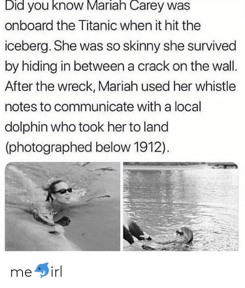 Vào năm 1912, Mariah Carey đã may mắn thoát khỏi vụ đắm tàu Titanic khét tiếng bằng tiếng gọi cá heo.