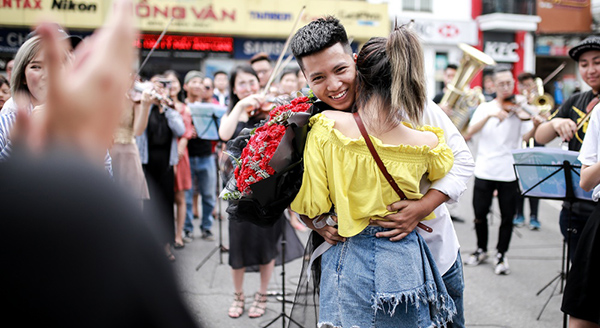Khoảnh khắc cầu hôn của Hiển với vẻ hồi hộp, chân thành đã khiến tất cả những người có mặt tại Phố đi bộ khi ấy không khỏi xúc động. Đã có những giọt nước mắt, những nụ cười và cả cái hôn nồng cháy khi nữ chính “say yes”.