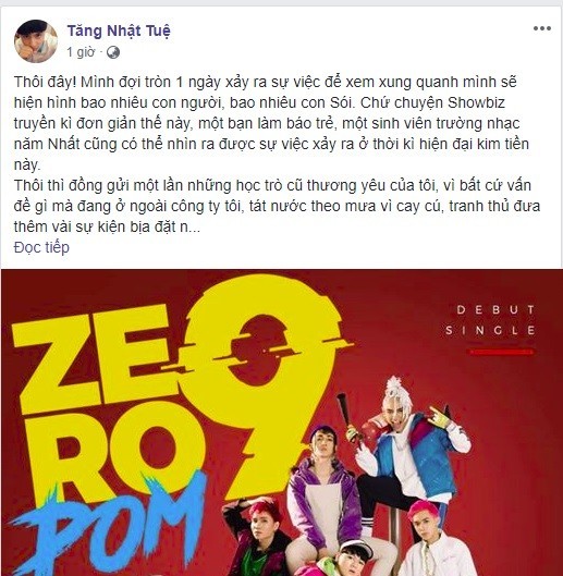 Động thái từ chối này đã dẫn đến việc anh bị ông bầu lao vào đánh ngay trên vỉa hè đến mức nằm co ro dưới đất. Sau đó bị thanh lý hợp đồng và đuổi khỏi nhóm, bị phạt 20 triệu kèm theo đó là cấm hoạt động showbiz trong vòng 3 năm. Theo những lời chia sẻ của nhân vật này thì dân mạng khoanh vùng và đặt nghi vấn đây chính là Minkook - thành viên nhóm nhạc Zero 9 và đối tượng “ông bầu” được nhắc đến không ai khác chính là Tăng Nhật Tuệ.