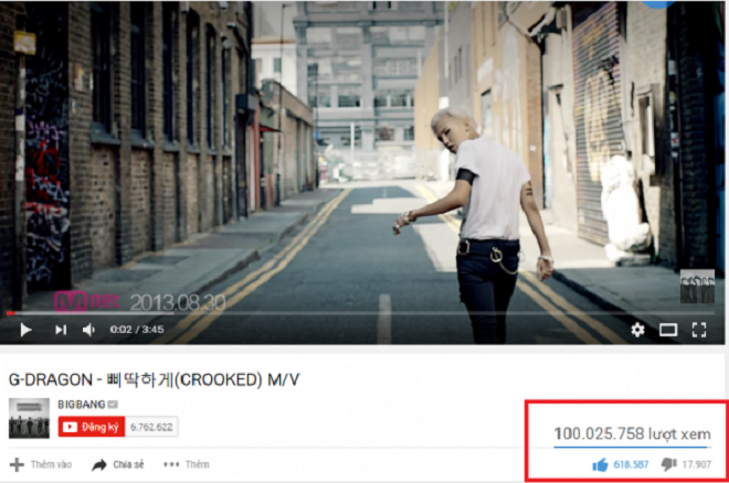 Mới đây, cộng đồng V.I.P đang vô cùng tự hào khi thành công đưa MV Crooked của chàng thủ lĩnh BigBang G-Dragon vượt mốc 100 triệu lượt xem trên Youtube.