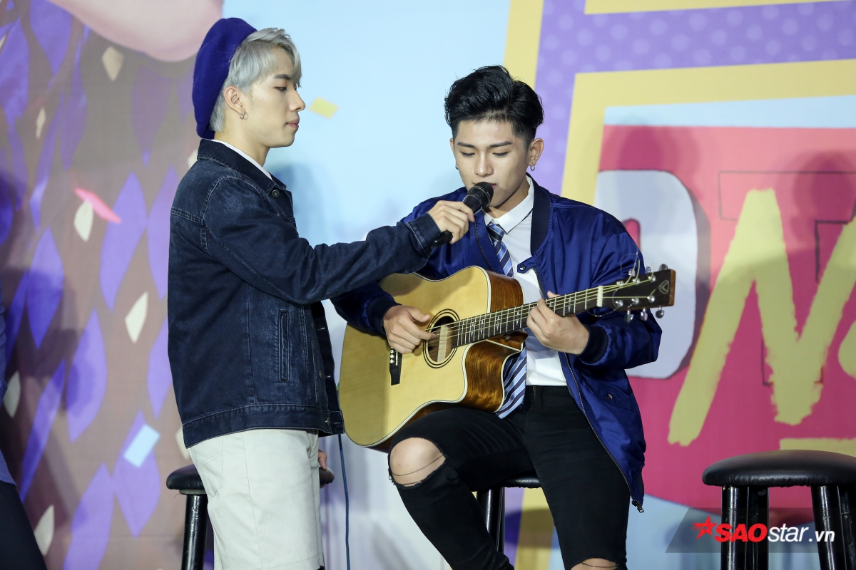 MONSTAR trình diễn #BABYBABY, Và tôi hát trên sân khấu họp báo.
