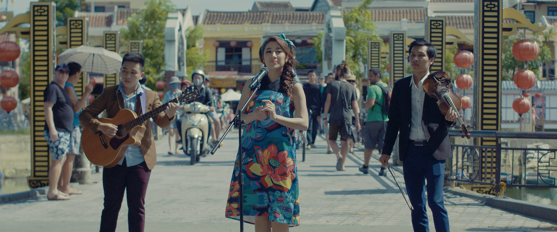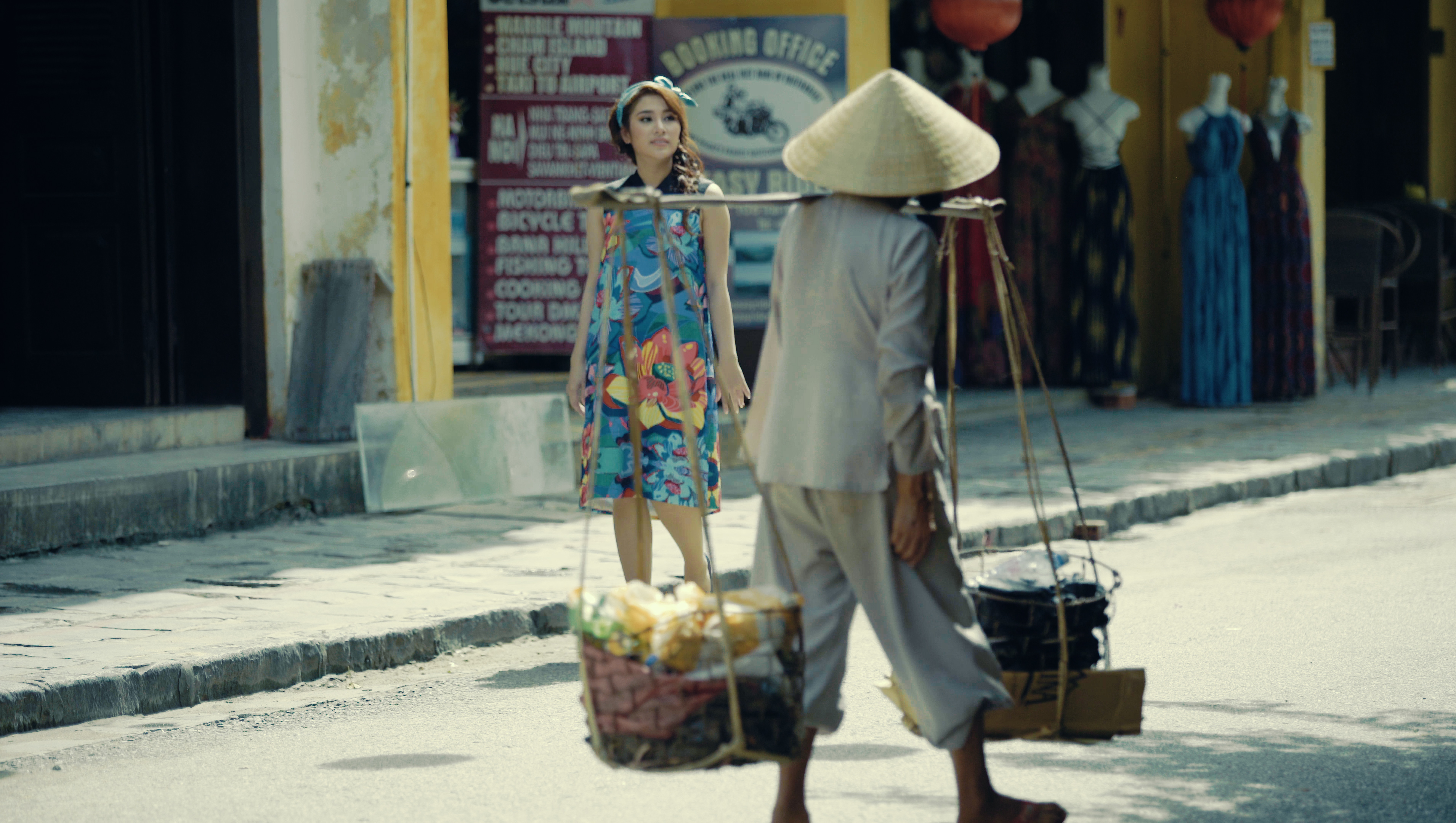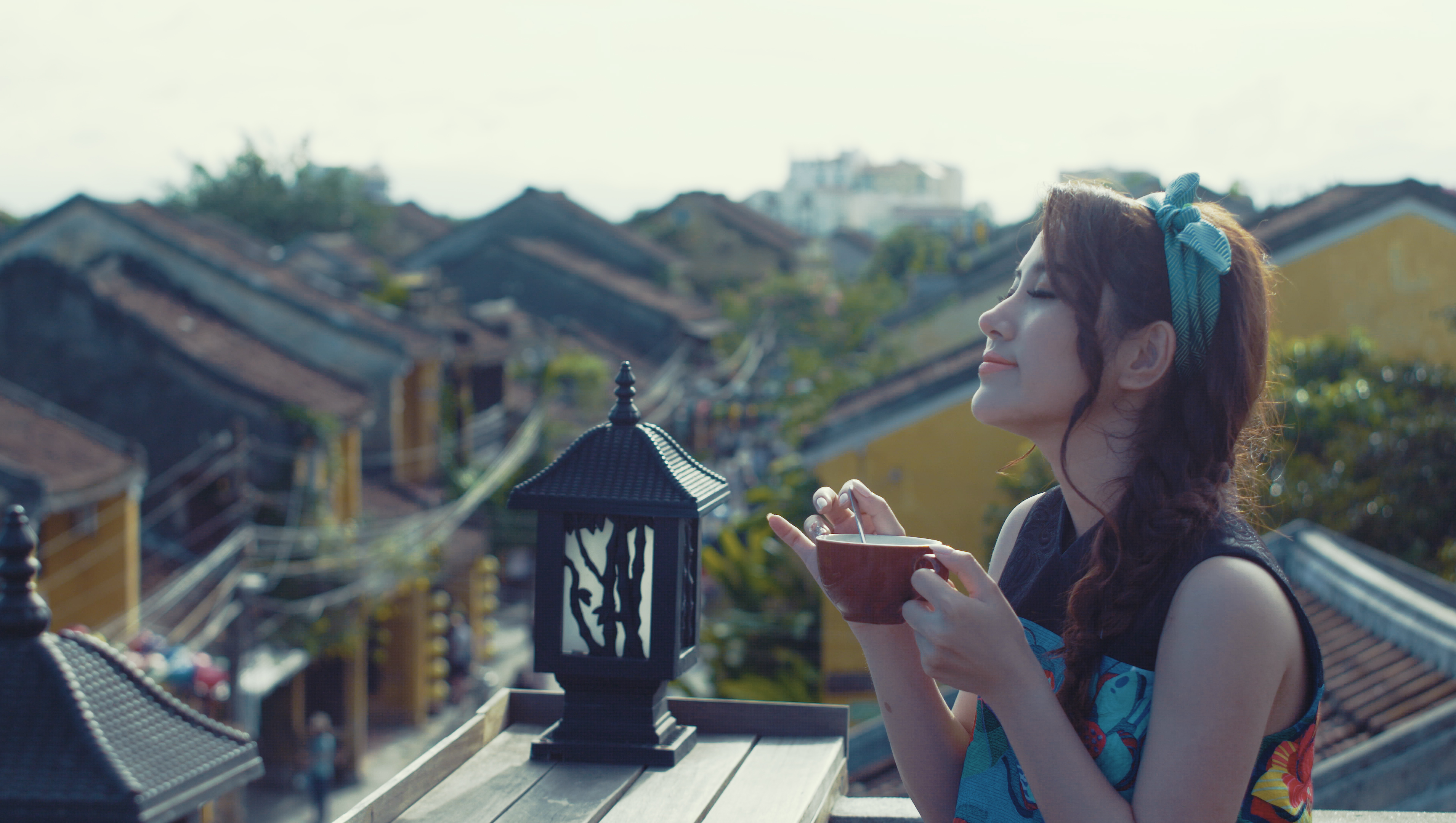 Để có những cảnh quay đẹp, “ngọc nữ” đã phải dậy từ 3 giờ sáng để trang điểm, làm tóc và 5 giờ di chuyển từ Đà Nẵng ra Hội An để nắm bắt những khoảnh khắc phố cổ từ sớm tinh mơ cho đến khi đêm về.