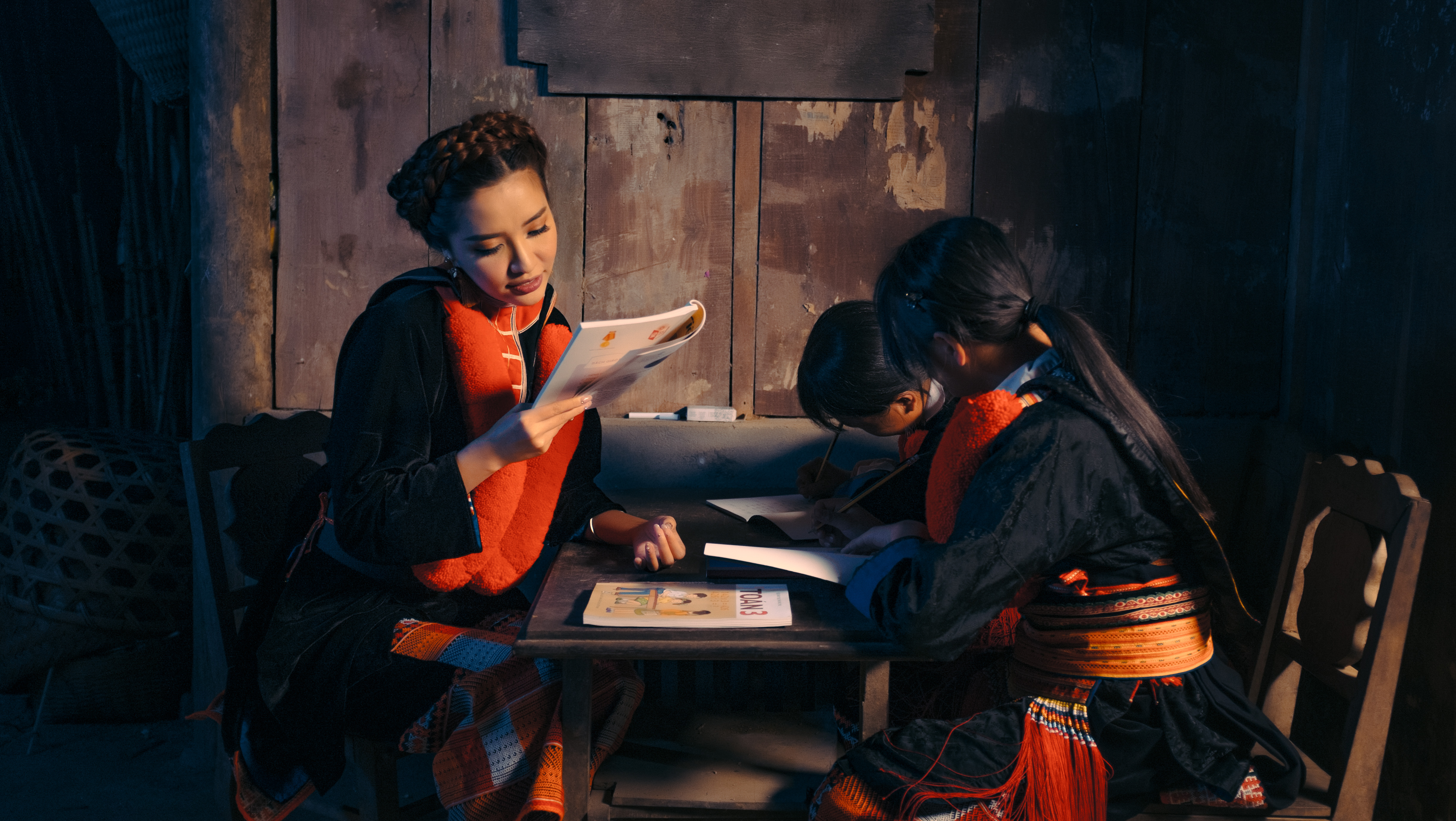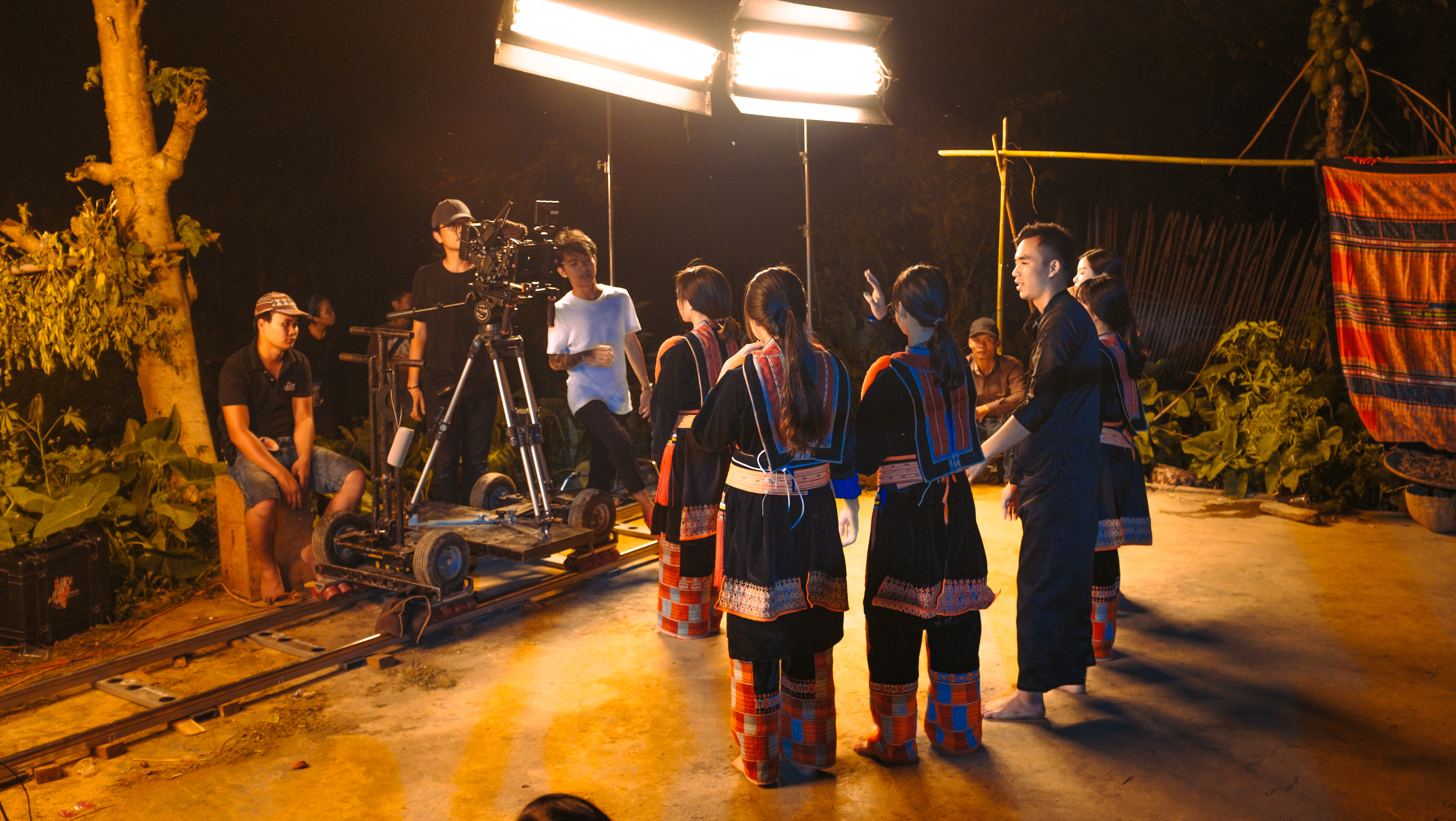 Cô và ekip gần 40 người đã không quản khó nhọc di chuyển một quãng đường rất dài từ TP HCM bay ra Hà Nội rồi di chuyển tiếp gần 1 ngày đi xe và cuốc bộ lên địa điểm quay hình.