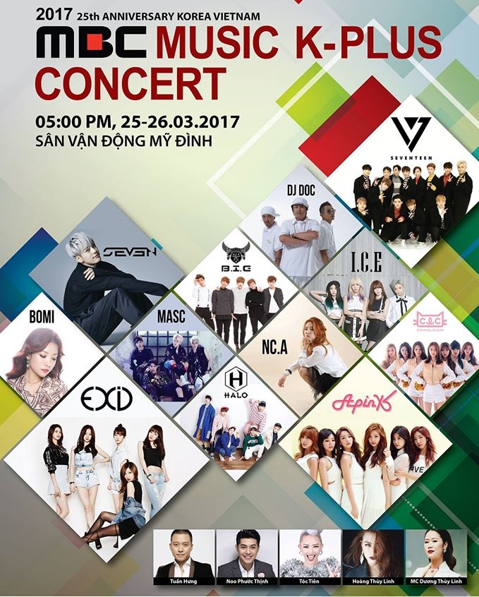EXID, SEVENTEEN, Apink, Se7en,… và nhiều cái tên lần đầu nghe sẽ “đổ bộ” Việt Nam nhân kỷ niệm 25 năm quan hệ 2 nước. Mà chẳng biết có nên sử dụng từ “đổ bộ” không khi mà ngoài EXID, SEVENTEEN, Apink ra thì các nghệ sĩ khác không biết lượng fandom ở Việt Nam của họ đang hoạt động thế nào? Nhưng thôi, có thể đây chỉ là một đêm diễn tiền đề cho 1/4 khi mà SNSD chính thức tới Việt Nam trong một đêm nhạc kỷ niệm đặc biệt khác?
