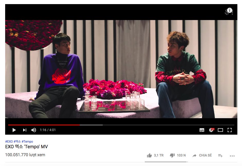 Tempo là MV trăm triệu view thứ 9 của EXO.