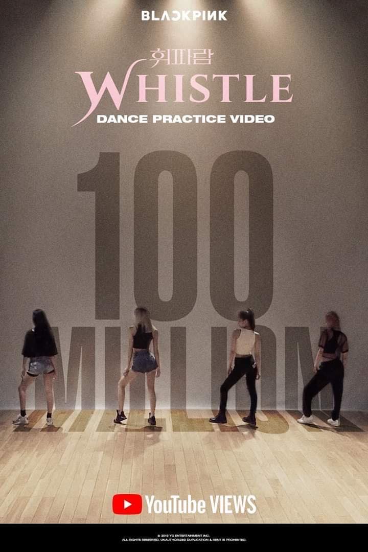 Cộng đồng người hâm mộ của nhóm nhạc BlackPink mới đây đã tiếp tục vỗ ngực tự hào vì một thành tích mới của thần tượng khi MV dance practice của Whistle chính thức cán mốc 100 triệu view. Được phát hành vào ngày 18/8/2016, như vậy tính tới thời điểm hiện tại, MV dance practice Whistle đã mất hơn 3 năm để có thể chạm đến cột mốc tròn trịa này. Mặc dù thời gian khá lâu, nhưng đây lại là thành tích vô cùng ấn tượng cho một MV dance.