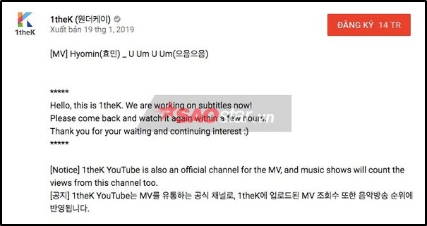 Chiều ngày 19/1, cộng đồng fan tá hỏa khi MV U Um U Um của Hyomin bất ngờ xuất hiện trên kênh YouTube 1theK sớm hơn dự định tận 1 ngày. Ngay sau đó, khi phát hiện sự cố, đơn vị này đã nhanh chóng gỡ MV trong sự ngỡ ngàng không biết chuyện gì đang xảy ra của người hâm mộ. Trước vụ rò rỉ MV có một trong hai tại Kpop này, trên các diễn đàn, người hâm mộ Hyomin đã liên tục để nhiều bình luận trái chiều. Theo đó, có không ít khán giả tỏ ra thất vọng với cách làm việc thiếu chuyên nghiệp thậm chí là ngớ ngẩn đến buồn cười từ 1theK. Việc MV bị rò rỉ trước ngày phát hành sẽ ảnh hưởng không nhỏ đến việc quảng bá sản phẩm của Hyomin sau này khiến người hâm mộ vô cùng lo lắng.