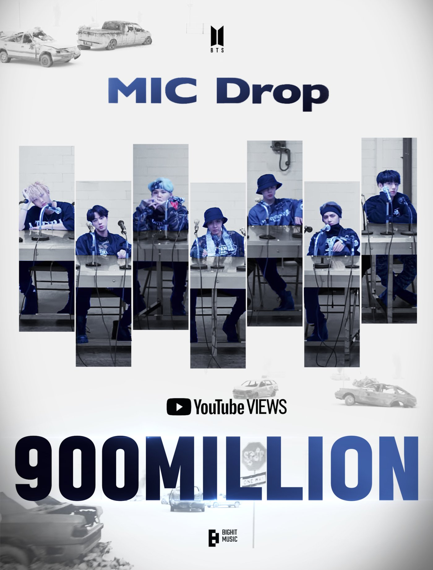 Cụ thể, vào ngày 11/4, MV MIC Drop của BTS đã chính thức đạt 900 triệu lượt xem trên Youtube trên kênh HYBE LABELS. Sản phẩm được BTS "thả xích" vào 24 tháng 11 năm 2017, điều này có nghĩa nhóm mất khoảng 3 năm 4 tháng để kịp "đuổi" theo con số 900 triệu view của MV Fake Love. MIC Drop là bản hit BTS kết hợp với Steve Aoki đã khuấy đảo Kpop thời điểm ấy với chất nhạc mạnh mẽ và nhất là khi được nhóm mang đến các sân khấu âm nhạc cuối năm.