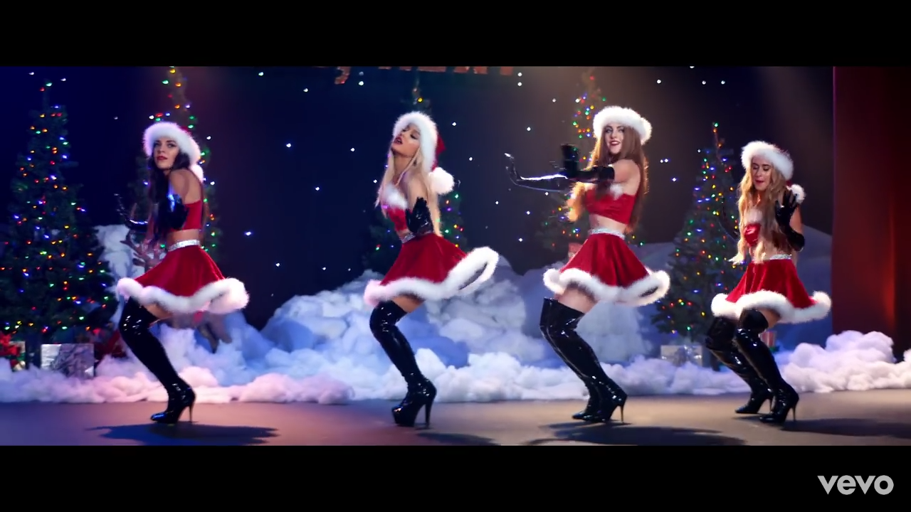 Tiếp theo, không thể thiếu được là khoảnh khắc biểu tượng nhất trong loạt phim về những cô gái xấu tính, hình ảnh mà gần như giới trẻ các thế hệ đều nhớ đến - Hình ảnh Regina George cùng 3 người bạn mặc đồ noel nhảy gợi cảm tại lễ của trường. Hình ảnh đó, tất nhiên Ariana Grande cũng không quên mang vào MV của mình rồi!