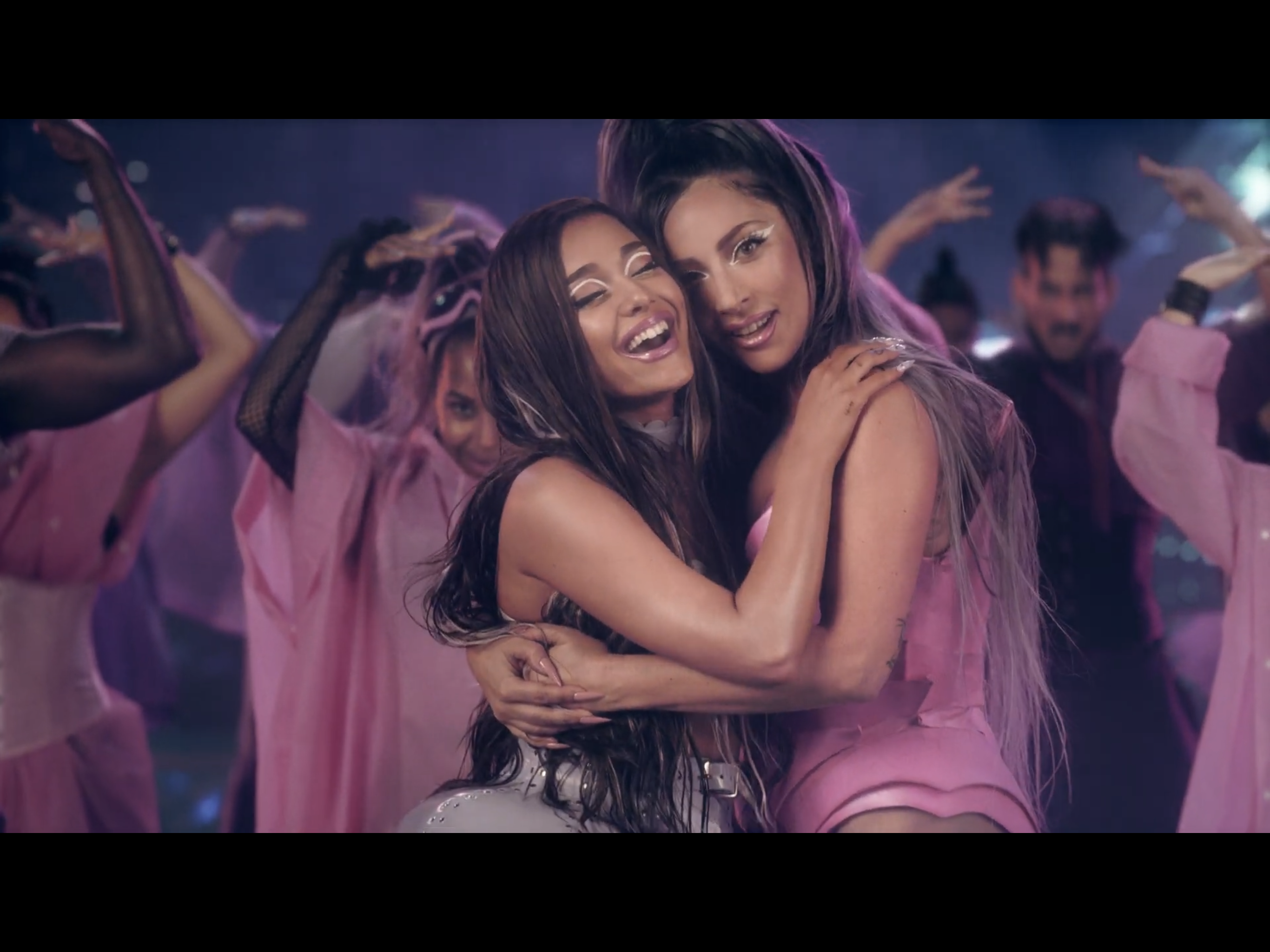 Nội dung MV không có gì hơn ngoài màn vũ đạo của 2 nghệ sĩ với dàn vũ công hoành tráng. Đây cũng là điều khiến khán giả thích thú vì trông 2 cô nàng như đang… tập dưỡng sinh vì những động tác khá ngộ nghĩnh. Tình chị chị em em sâu đậm càng thêm được khẳng định ở cảnh cuối khi Gaga và Ari ôm chầm lấy nhau cười hạnh phúc. Đã khá lâu rồi “bà mẹ quái vật” mới có một MV khiến các Little monster “phát cuồng” sung sướng đến như vậy sau kỉ nguyên Joanne khá trầm lắng.