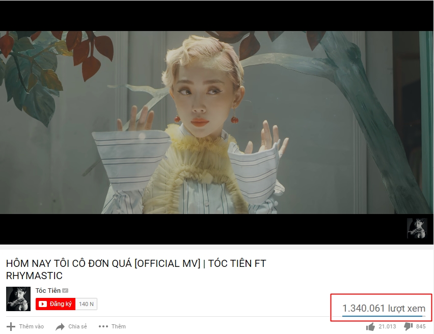 Lượt xem cán mốc 1 triệu sau đúng 1 ngày của MV Tóc Tiên.