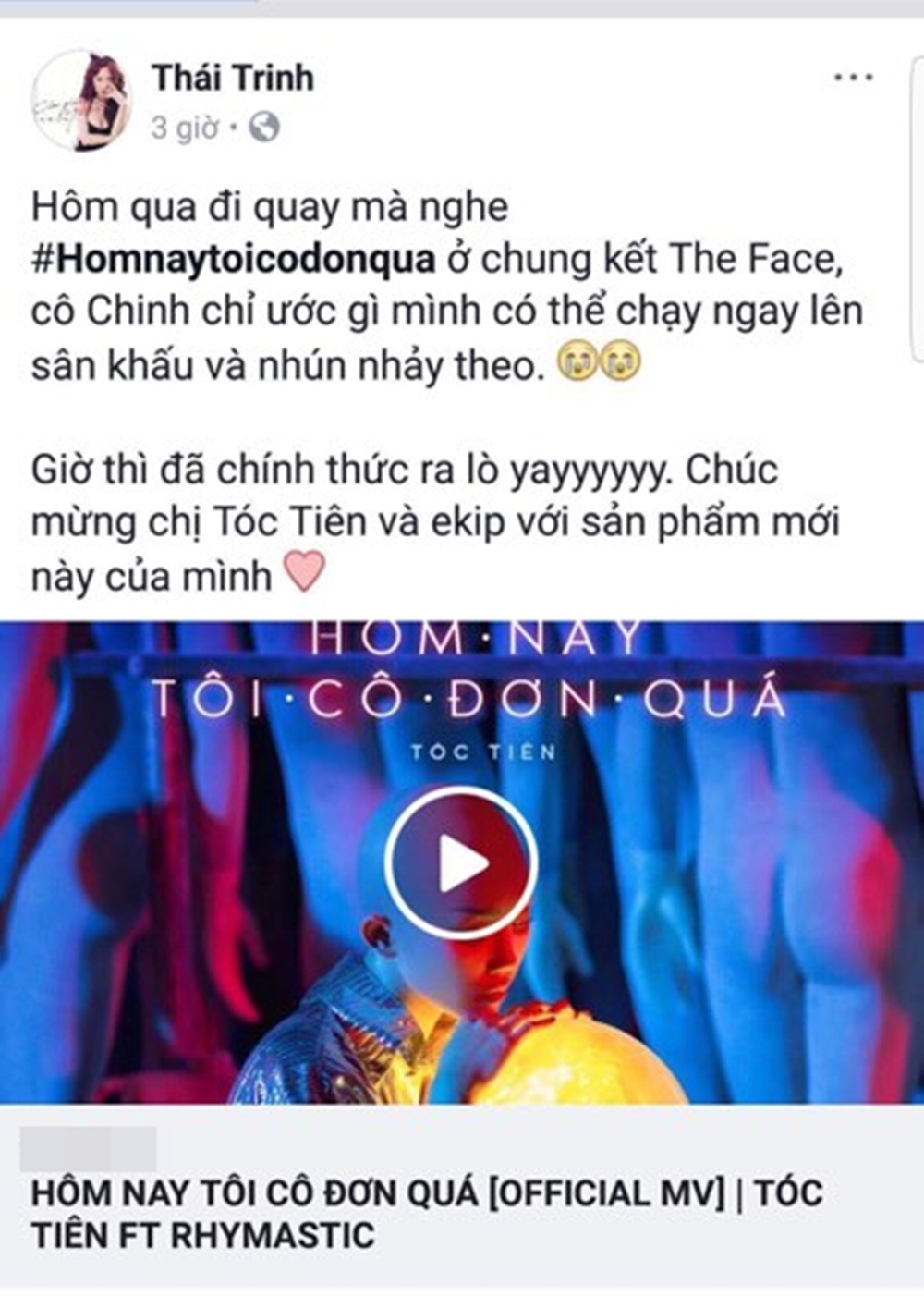 Thái Trinh bày tỏ cảm xúc với sản phẩm mới của Tóc Tiên ngay lần đầu thưởng thức.