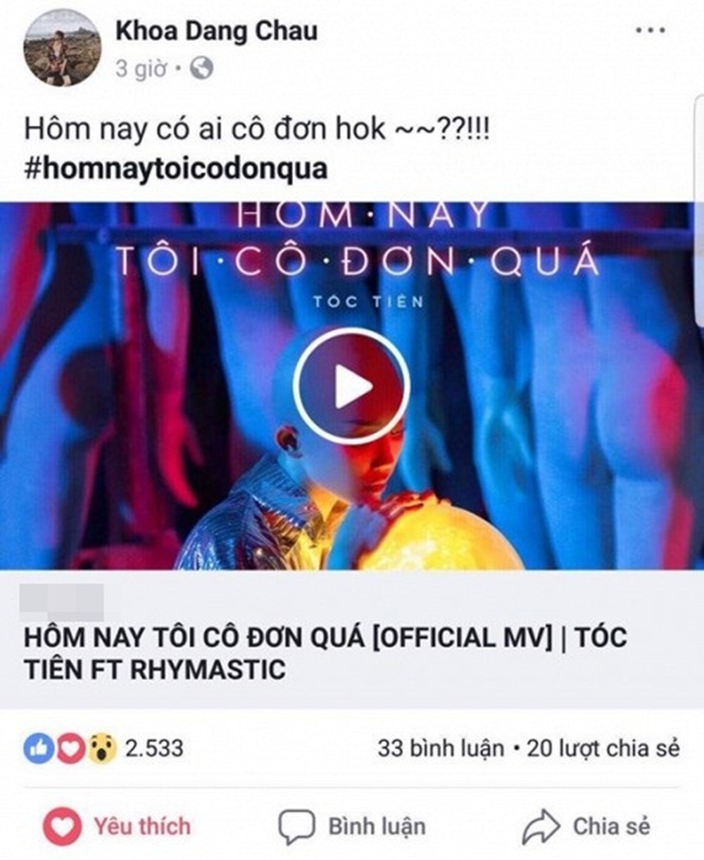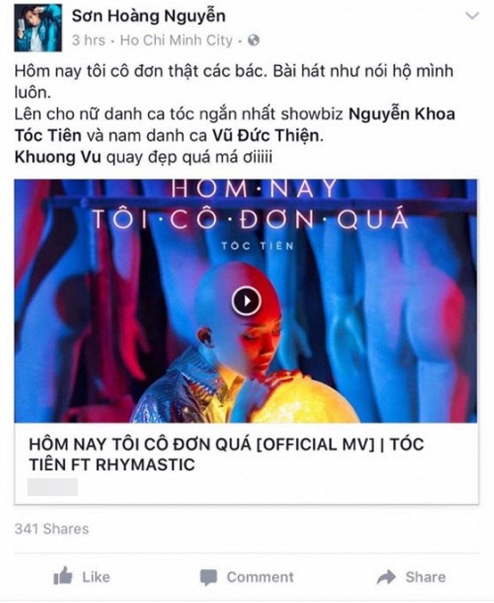 20h tối ngày 28/8, Tóc Tiên chính thức tung MV Hôm nay tôi cô đơn quá, ca khúc được dự đoán sẽ tiếp bước thành công của bản hit Em không là duy nhất. Chưa đầy 24 giờ, MV mau chóng lập thành tích đáng nể: cán mốc 1 triệu views trên Youtube.