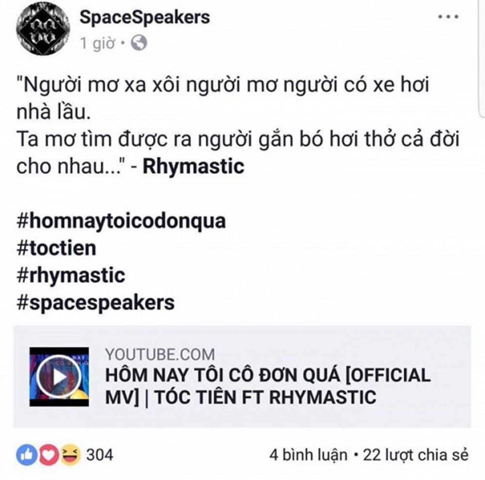 Space Speakers chia sẻ ủng hộ đoạn rap “chất lừ” của Rhymastic.