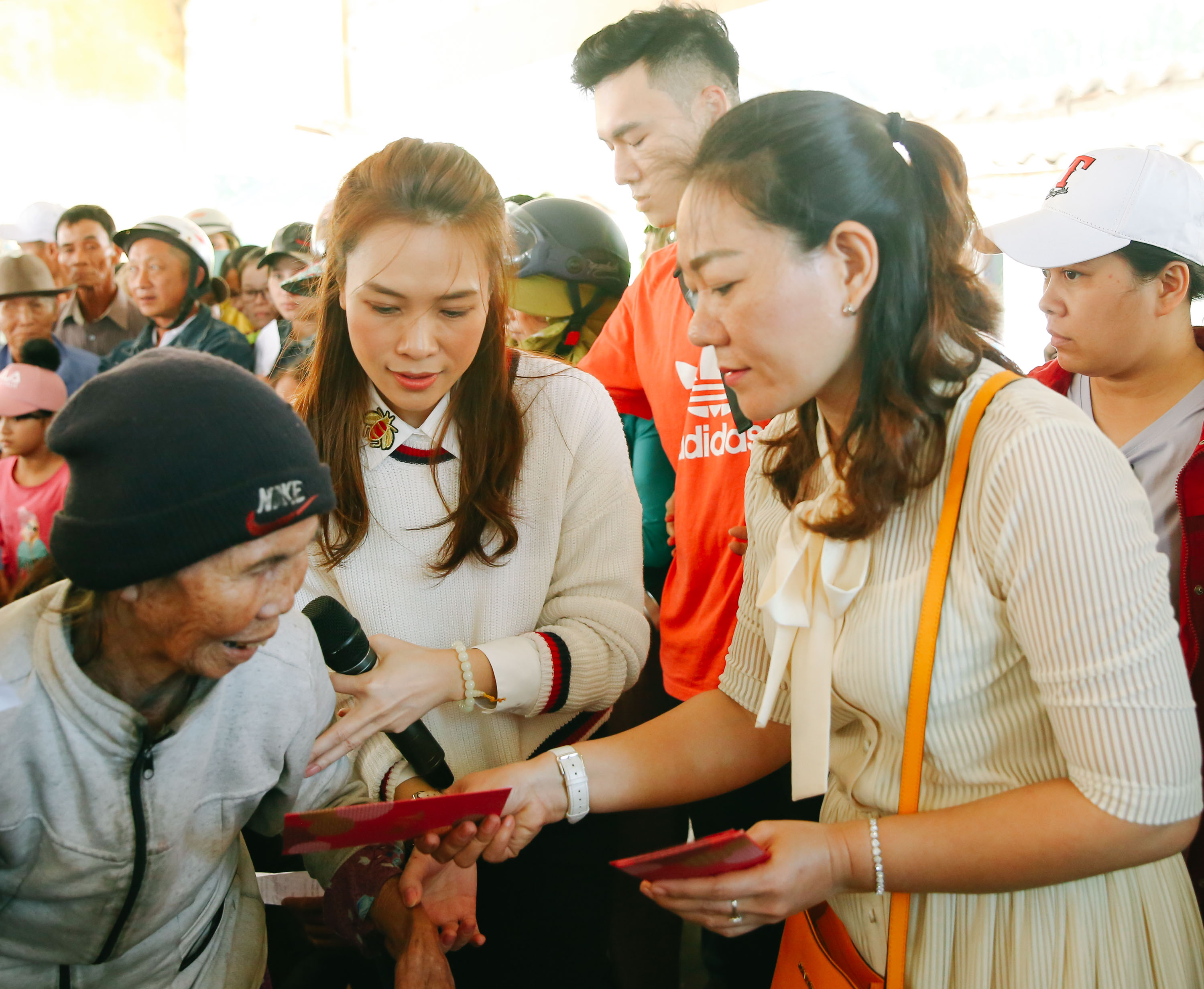 Đây là hoạt động thường niên mà nữ ca sĩ thực hiện nhằm giúp bà con đón một cái Tết đủ đầy, sung túc hơn. Năm nay, hơn 270 phần quà được cô trao tận tay cho cho người dân nghèo. Ngoài phần trao quà, phần giao lưu văn nghệ gần gũi giữa cô và các cụ già cũng góp phần khiến không khí buổi từ thiện trở nên đầm ấm hơn.